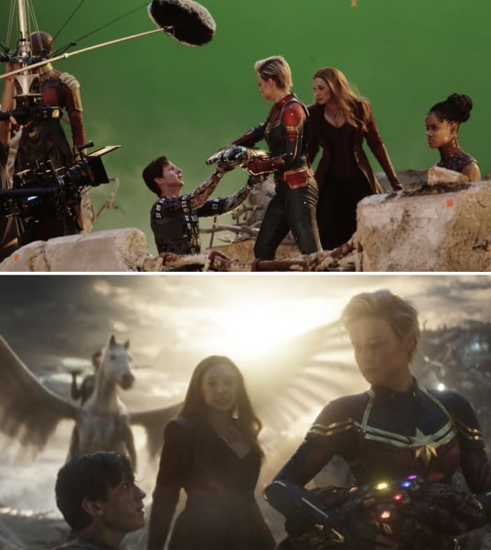 19. 인피니티 건틀렛을 캡틴 마블에게 건네주는 톰 홀랜드의 스턴트 더블