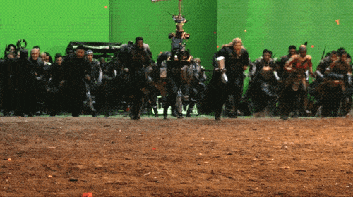 21. 시간 여행을 위한 '팀 슈트'를 입고 슬로우모션으로 걸어가는 모습을 촬영중인 어벤져스 멤버들 (팀 슈트가 전부 CG 였다니)